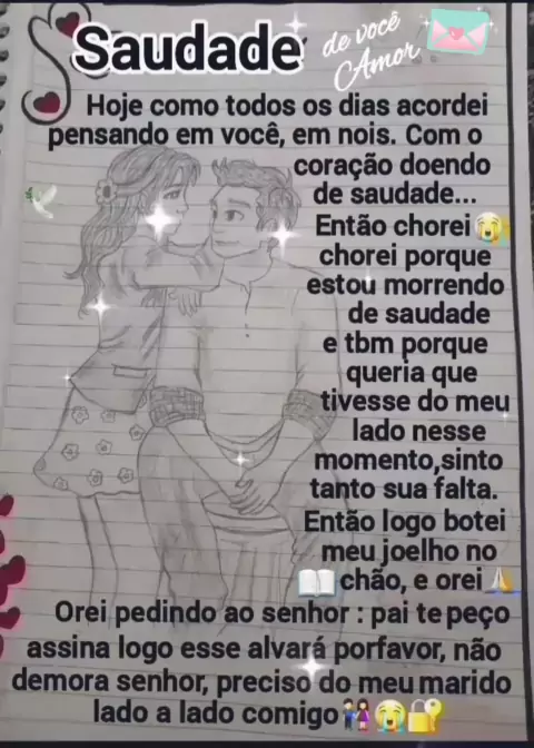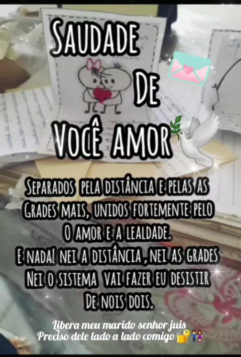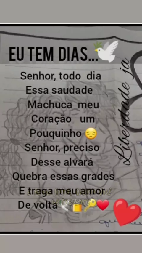 saudade de você amor... Deus está no controle de sua vida logo logo liberdade canta 📝👫💍❤️🕊🔓