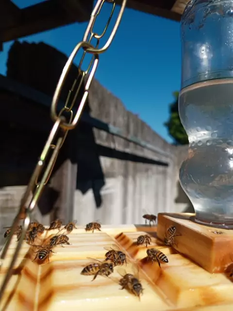 abelha sem ferrão e abelha com ferrão no alimentador