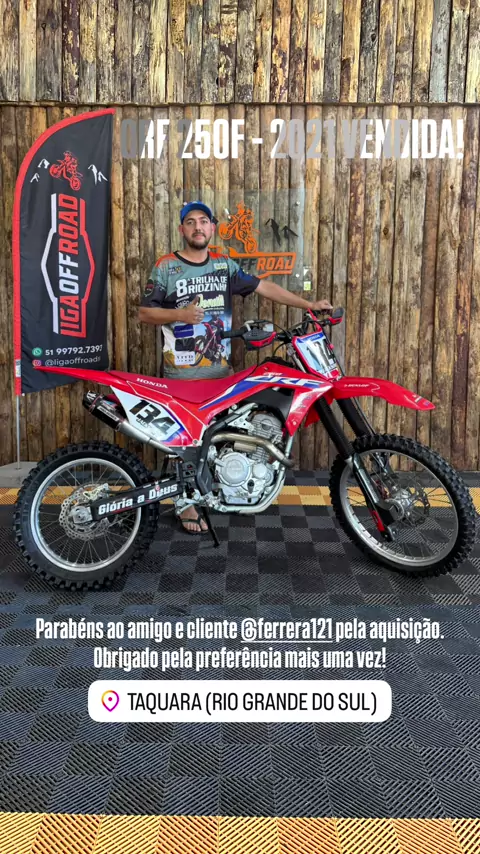Mais uma máquina entregue! 🔥 Essa CRF 250F 2021 foi para o amigo e cliente @ferrera121 de Taquara/RS. Muito obrigado pela preferência e confiança mais uma vez! A Liga Off Road fica feliz em fazer parte de mais essa conquista. Bora acelerar! 💨