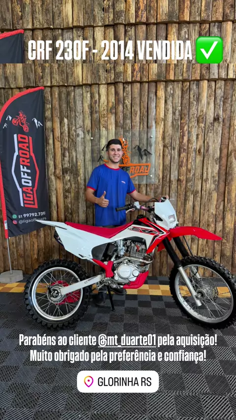 Mais uma CRF 230F 2016 entregue com sucesso! 🔥 Essa máquina agora é do cliente Eduardo — parabéns pela conquista! Agradecemos pela confiança e preferência. Que venham muitas trilhas e histórias com essa nave!