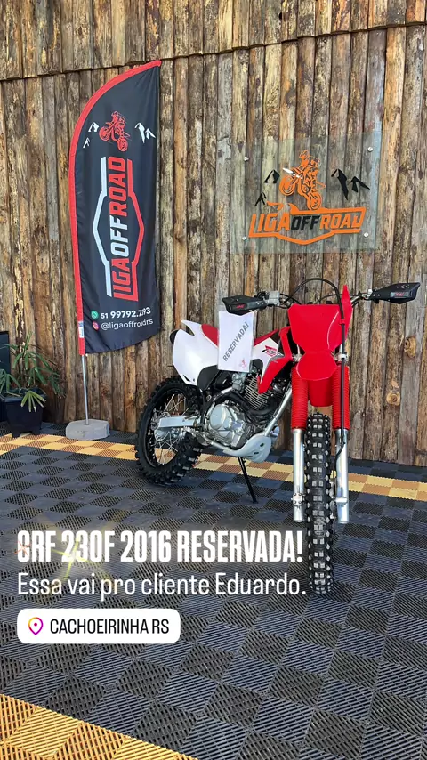 Novidade na área! 🔥 CRF 230F 2016, totalmente revisada pela equipe da @idealmotosperformance — pronta pra encarar qualquer trilha com potência e confiança.