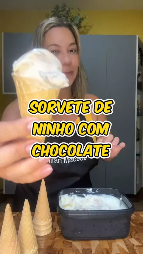 Bora fazer sorvete de Ninho com chocolate? 1 caixinha de leite condensado 1 caixinha de chantilly (gelado) Ganache: 120gr de leite em pó Chocolate e creme de leite #sorvete #ninho #chocolate #doce #férias