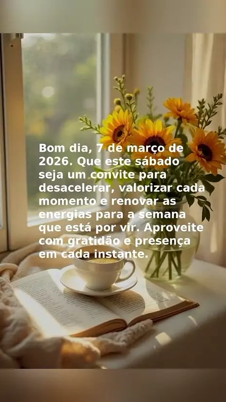 A LUZ QUE TE GUIA É MAIOR QUE QUALQUER ESCURIDÃ 🌻✨ ​Não é apenas um sábado, é o cuidado de Deus se renovando sobre a sua vida. Desacelere, respire e sinta a paz que excede todo entendimento. ​O que Ele preparou para você nesta nova semana é muito maior do que você imagina! Confie no processo e descanse no Senhor. 🙌 ​Diga AMÉM nos comentários se você crê nessa vitória e COMPARTILHE essa luz com alguém que precisa de um abraço na alma hoje! ❤️ ​#KwaiGospel #BomDia #Fé #GraçaEPaz #Motivaçãokwai