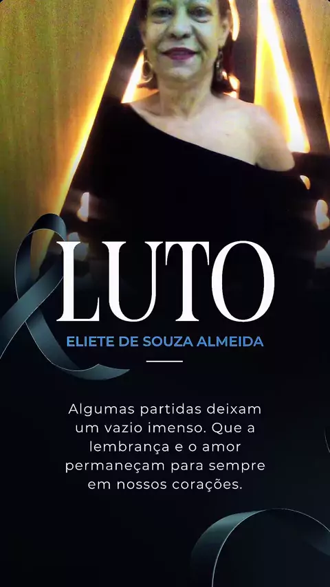 Hoje prestamos nossa homenagem à Eliete de Souza Almeida, lembrando com carinho de quem ela foi em vida. Uma pessoa querida, de coração generoso, que deixou sua marca na vida de todos que tiveram o privilégio de conviver com ela. As lembranças, os sorrisos e os momentos compartilhados permanecerão para sempre em nossos corações. Que o amor dos familiares e amigos traga conforto, força e consolo neste momento de dor. Nossos sentimentos a todos.