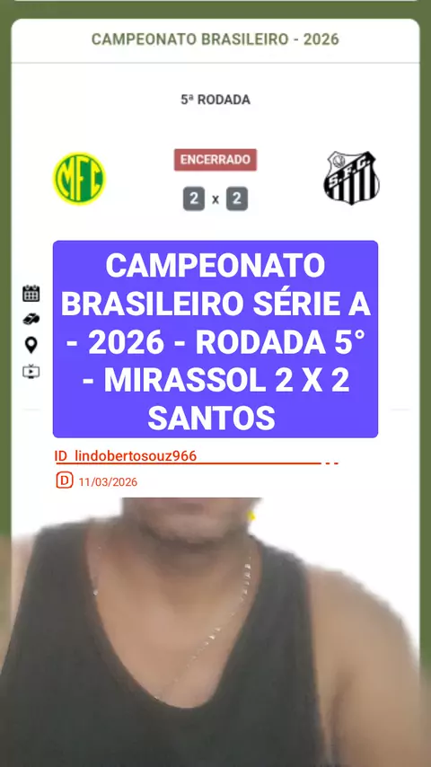 #SEJAUMCRIADOR #FUTEBOL #CAMPEONATO #BRASILEIRO SÉRIE A - 2026 - RODADA 5° MIRASSOL 2 X 2 SANTOS