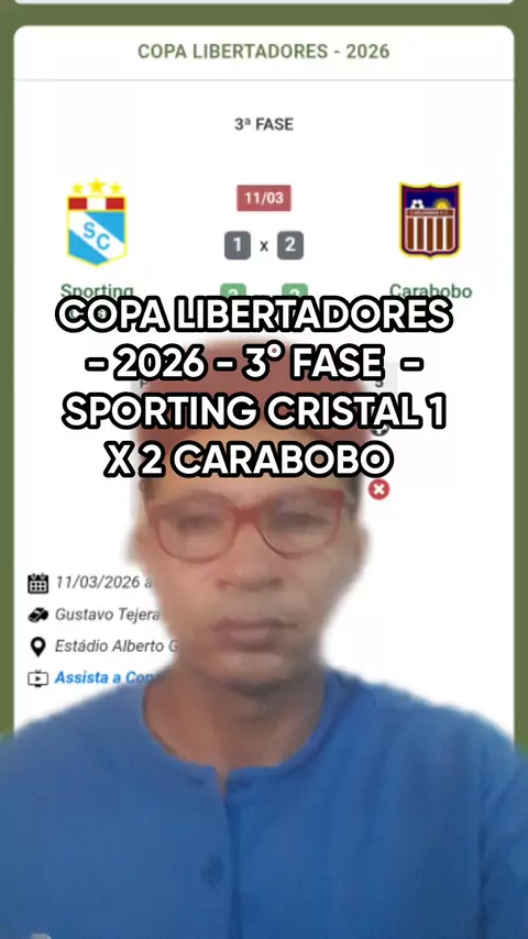 #SEJAUMCRIADOR #FUTEBOL #COPA #LIBERTADORES - 2026 3° FASE SPORTING CRISTAL 1 X 2 CARABOBO