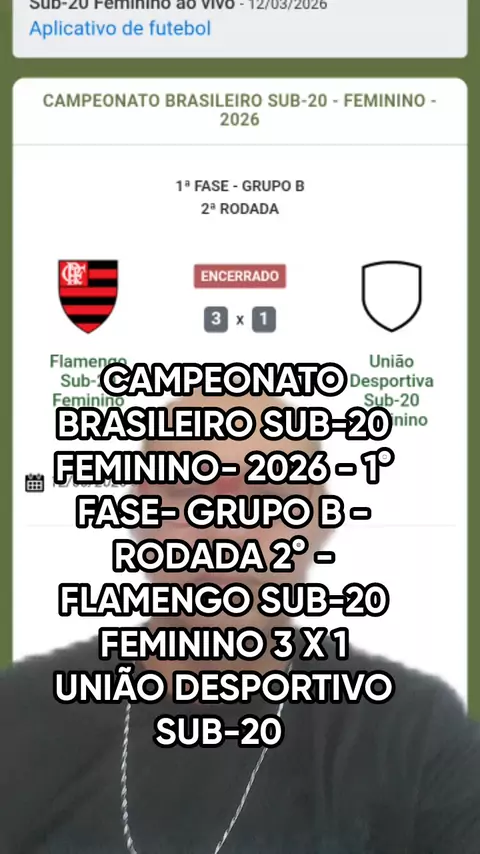 #SEJAUMCRIADOR #FUTEBOL #CAMPEONATO #BRASILEIRO SUB-20- 2026 - 1° FASE GRUPO B 2° RODADA FLAMENGO SUB-20 FEMININO 3 X 1 UNIÃO DESPORTIVA SUB-20 FEMININO