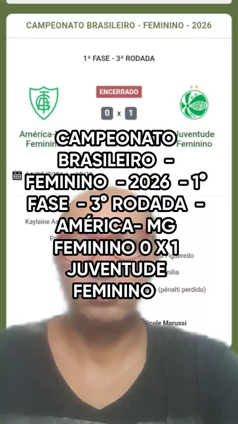 #SEJAUMCRIADOR #FUTEBOL #CAMPEONATO #BRASILEIRO FEMININO 2026 - 1° FASE 3° RODADA AMÉRICA- MG FEMININO 0 X 1 JUVENTUDE FEMININO