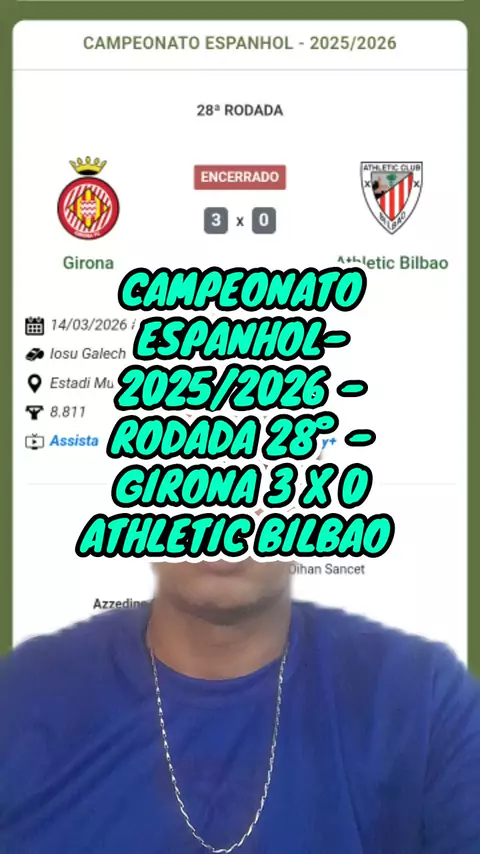 #SEJAUMCRIADOR #FUTEBOL #CAMPEONATO #ESPANHOL 2025/2026 - RODADA 28° GIRONA 3 X 0 ATHLETIC BILBAO