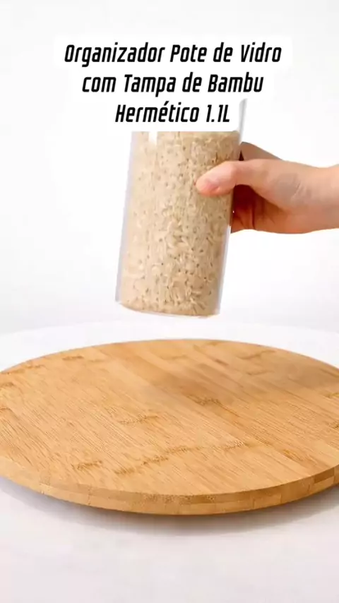 Organizador Pote de Vidro Borossilicato Canelado com Tampa de Bambu Hermรฉtico 1.1L #pote #potedevidro #tampadebambu #cozinhaorganizada