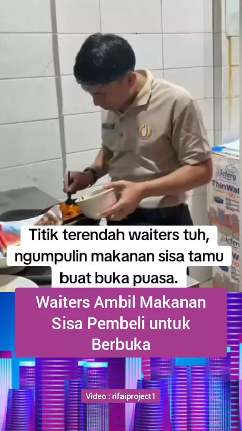 Waiters Ambil Makanan Sisa Pembeli untuk Berbuka