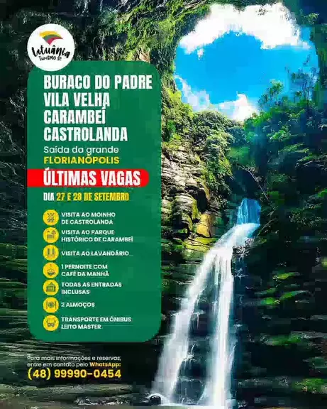 🚨 ÚLTIMAS VAGAS! 🚨 Está chegando a sua chance de viver essa experiência incrível: 📍 Buraco do Padre 📍 Parque Vila Velha 📍 Lavandário de Carambeí 📍 Castrolanda Saída da grande Florianópolis. 🗓️ Dias 27 e 28 de setembro – dois dias intensos de natureza, cultura e paisagens inesquecíveis! Não fique de fora dessa viagem que está quase lotada! 👉 Reserve AGORA com a Lituânia Turismo SC e garanta o seu lugar: (48) 98436-5684 #lituaniaturismosc #buracodopadre #vilavelha #carambei