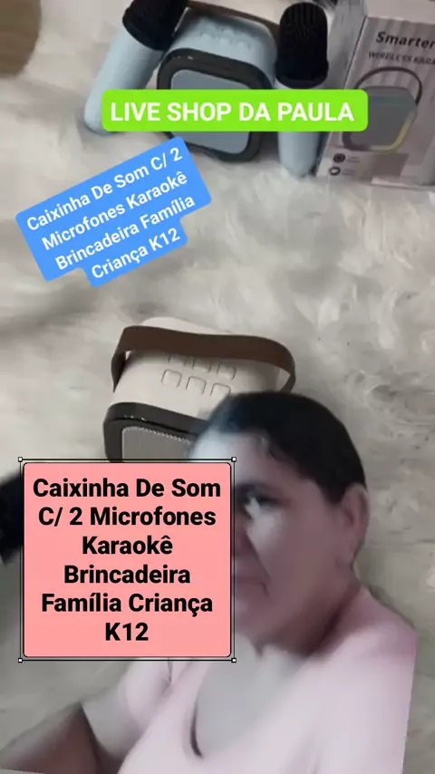 Caixinha De Som C/ 2 Microfones Karaokê Brincadeira Família Criança K12 #Shop