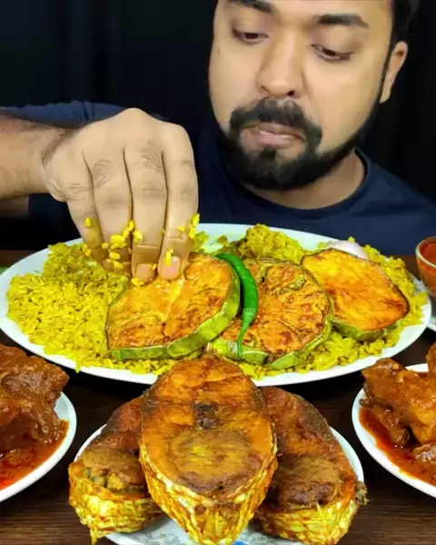 #livetoeatt #bigbites #mukbang #spicymutton #muttoncurry #bhunakhichuri #hilsafish #brinjalfry #salad #favoritemukbanger #explor