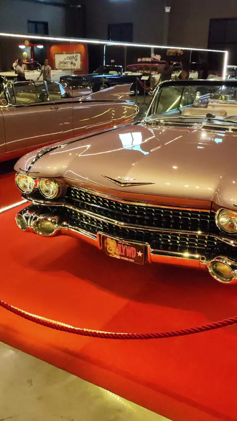 Cadillac Eldorado Biarritz conversível 1959, cor de rosa, produzido pela General Motors na década de 1950