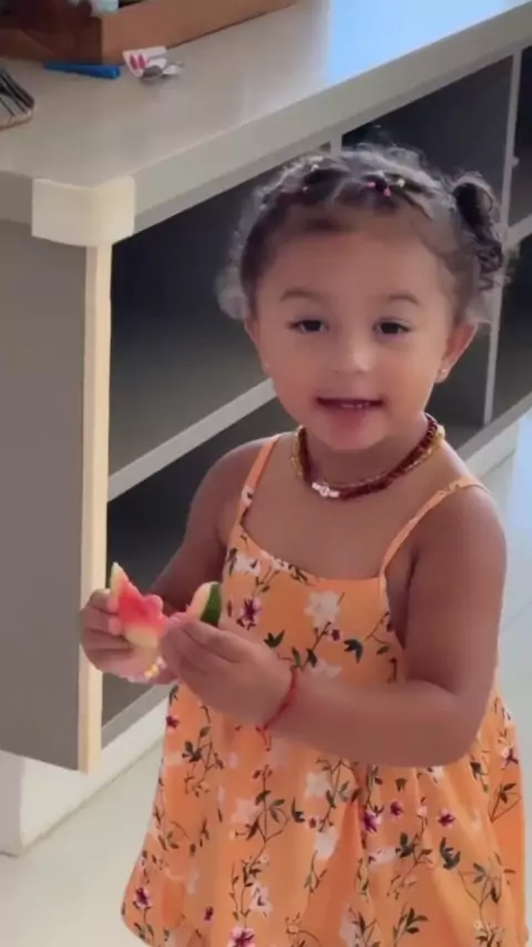 Liz comendo melancia e conversando a mamãe Lore Improta 🥰 Vejam #liz #lizimprota #lizelore #loreimprota #leosantana