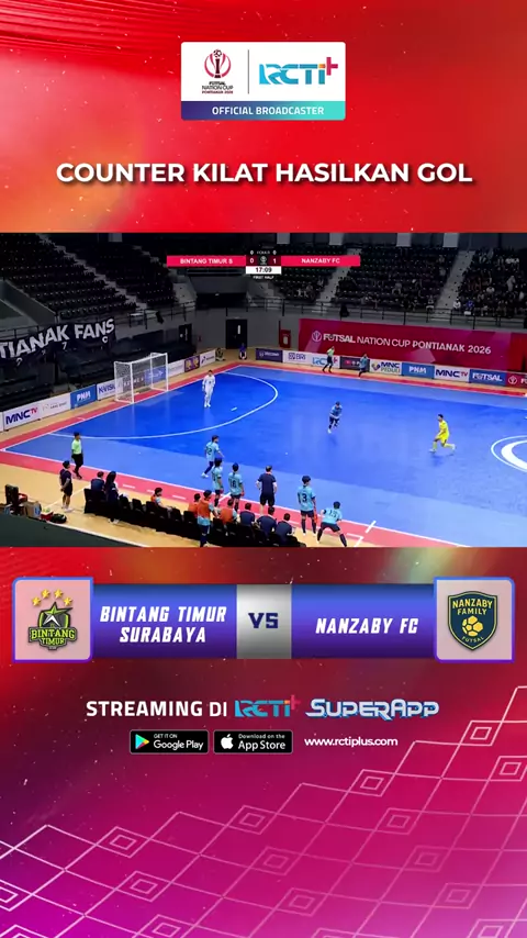Transisi cepat menjadi kunci gol penyeimbang Bintang Timur Surabaya Cek link rcti.plus/FNC2026 #FNC2026 #FutsalIndonesia #BersaingBertumbuhJuara #RCTIPlusSports #RCTIPlusSuperApp