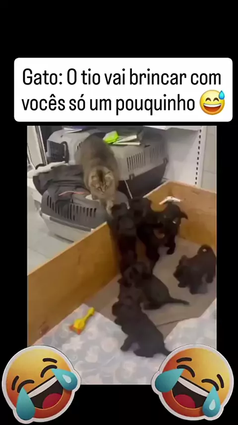 o gatinho 🐱 vai brincar com os cãozinhos 🐕 🐕 🐕 🐕 🐕