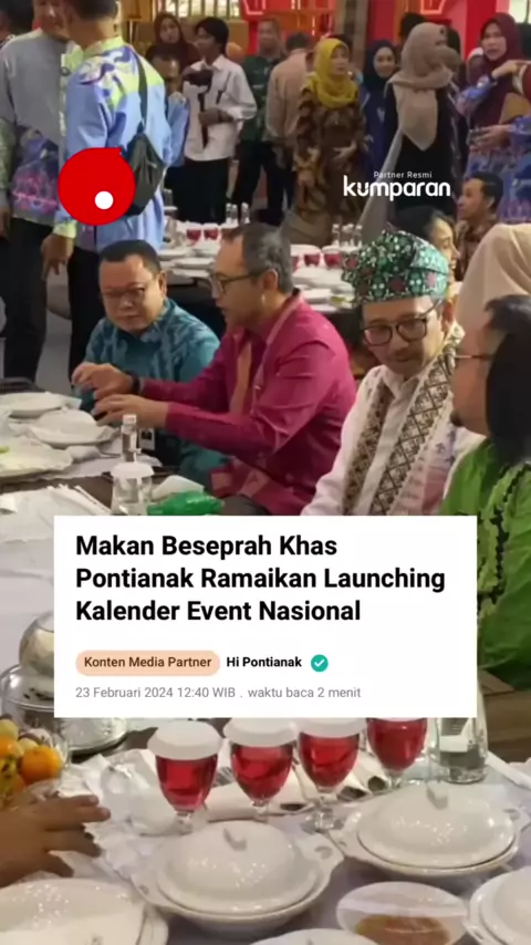 Makan beseprah khas Pontianak ramaikan Launching Kalender Event Nasional di Expo Saprahan Khatulistiwa 2024. Makan bersama sembari duduk di atas tikar ini menyajikan kuliner Kalimantan Barat dengan tata cara makan khas Seprahan Pontianak yang sengaja disajikan untuk para tamu. Pada tahun ini ada dua event Kalbar yang masuk dalam Kharisma Event Nusantara. Cap Go Meh Singkawang masuk dalam top 10 Kharisma Event Nusantara dan Gawia Sowa masuk dalam 110 Kharisma Event Nusantara. Baca selengkapnya d...