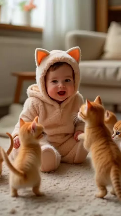 Bebe fofo com gatinhos #bebe #gatinhos #fofo