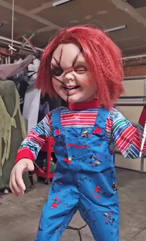 Olha o trabalho de pintura que um dos meus colegas do Chicago Haunt Builders Callender fez no animatrônico do Home Depot! # Halloween # Chucky # halloweendiy # horror # page