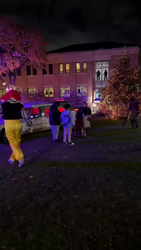 É por isso que é sempre bom que os atores de terror trabalhem em conjunto. Essas pessoas estavam tão focadas em Leatherface que nem viram Pennywise chegando # halloween # halloweencostume # hauntedhouse # horror # pennywise # Leatherface # page