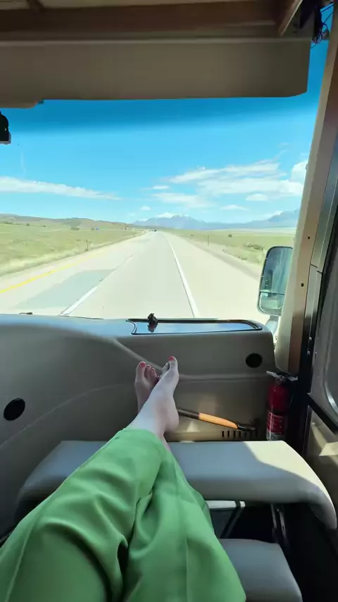 ☕️ Coffee break… without the break. One perk of traveling in a motorhome? I can grab a refill while cruising down the highway. No detours. No drive-thrus. Just hot coffee and open roads. Would you trade your commute for this kind of morning?👇#RVLife#MotorhomePerks#Travelfamily#Vanlife