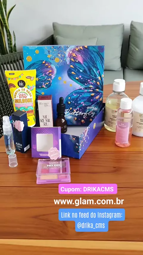 A glam Butterfly é a edição de Janeiro, a primeira edição do ano 🦋 Assine hoje usado meu cupom: DRIKACMS e garanta 3 meses grátis , uma super oportunidade para fazer parte dessa experiência de beleza que é a glam 💜 Mais informações no Instagram drika_cms #glambutterfly #universoglam #glam #glambox #glambag