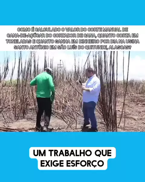 COMO É CALCULADO O VALOR DO CORTE MANUAL DE CANA-DE-AÇÚCAR DO CORTADOR DE CANA, QUANTO CORTA EM TONELADAS E QUANTO GANHA EM DINHEIRO POR DIA NA USINA SANTO ANTÔNIO EM SÃO LUÍS DO QUITUNDE, ALAGOAS. #noticias #News #alagoas #cana #usina