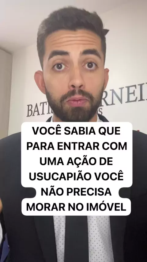 VOCÊ SABIA QUE PARA ENTRAR COM UMA AÇÃO DE USUCAPIÃO VOCÊ NÃO PRECISA MORAR NO IMÓVEL. SE VOCÊ NÃO SABIA QUE NÃO PRECISA MORAR NO IMÓVEL PARA PEDIR A USUCAPIÃO, DEIXE O SEU COMENTÁRIO. SE VOCÊ GOSTOU DESSA DICA, JÁ SALVA ESSE VÍDEO E ME SIGA PARA MAIS.