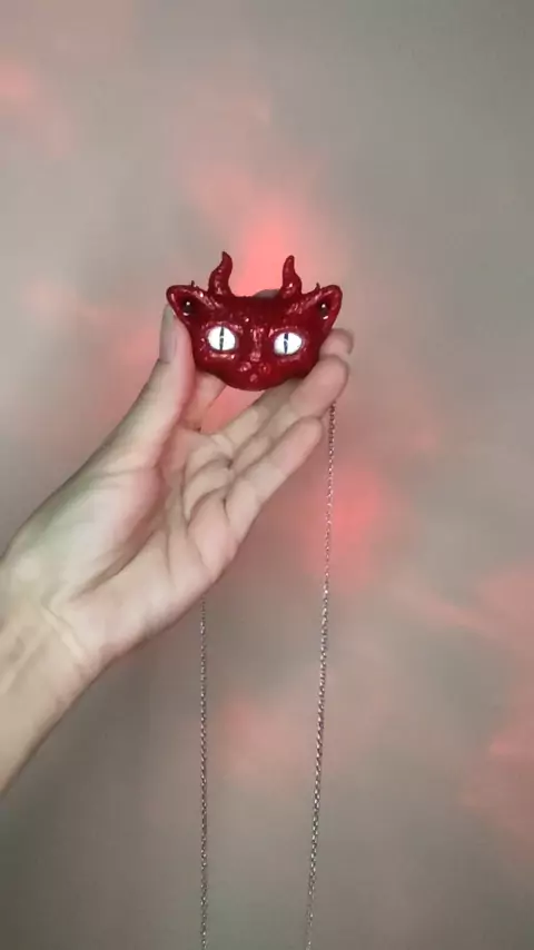 Orgonite Gatinho glitter com Chifres. Jaspe vermelho e cristal de quartzo. #gatinho #cristal #glitter #colar #orgonite