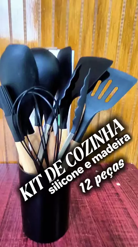 KIT DE COZINHA DE MADEIRA COM SILICONE 12 PEÇAS #blackfridaykwai #EstrelaDeFamília #Ultra10kvis #achadinhokwaishop #Ultra10kvis