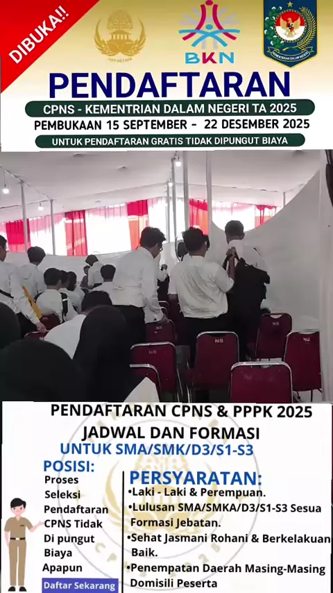 PENDAFTARAN CPNS 2025 RESMI DIBUKA UNTUK UMUM kesempatan terbuka bagi anda yang ingin kembali mendaftar dan ikut seleksi PPPK 2025 daftar sekarang melalui https://daftarnow79.viivx.com/ #umrohbarengsnackvidio #cAnTiKpaRipuRnA #SnackStyle