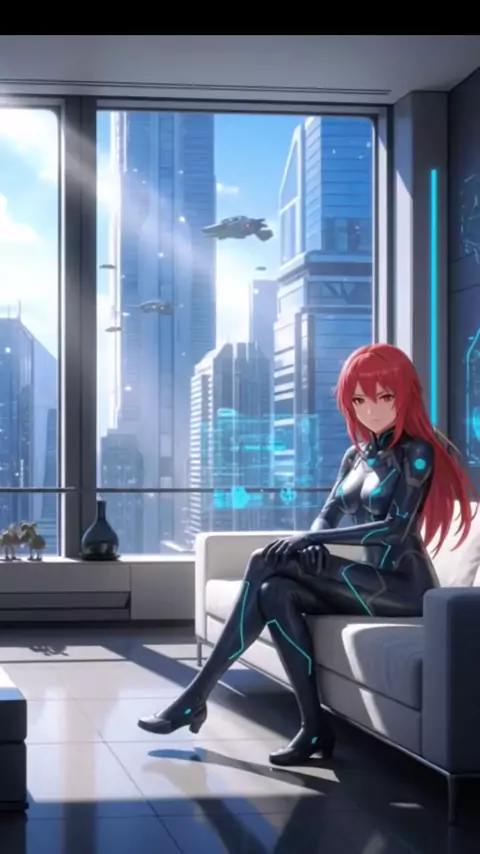 Cabelos vermelhos como fogo em meio ao cinza da distopia. Ela não se esconde — ela redefine o futuro. 🔥🌆 #CyberpunkVibes #MulherDeFogo #EstéticaFuturista #AnimeCyberpunk #BelezaNaDistopia
