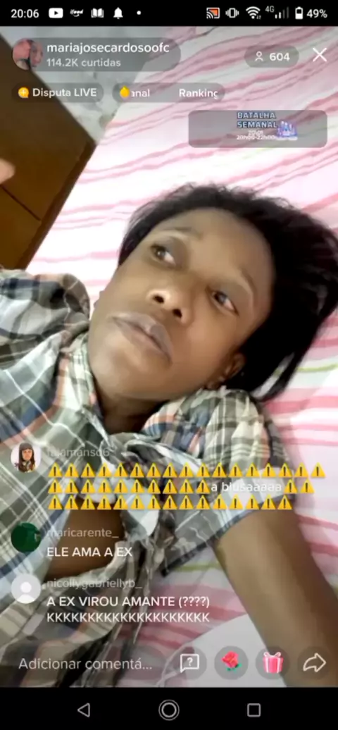 Maria com a blusa aberta na live