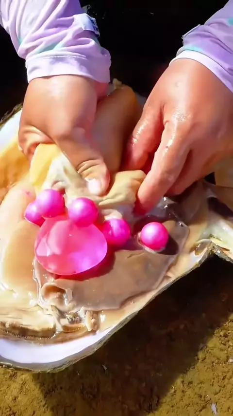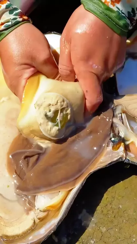 A garota abriu o molusco gigante, que estava cheio de pérolas de alta qualidade e extremamente charmoso # pearl # pearlhunter # seafood # jewelry # pickingpearls # huntingpearl # # #