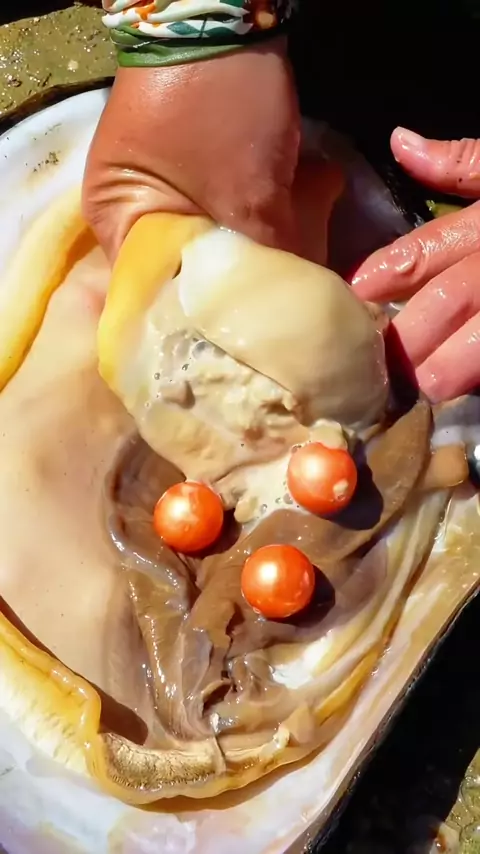 As amêijoas gigantes guardadas por peixinhos dourados contêm pérolas preciosas e bonitas, que são intoxicantes # pearl # pearlhunter # marisco # jewelry # huntingpearl # pickingpearls # # #