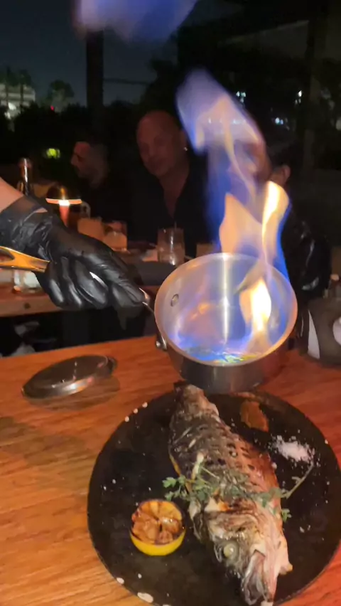 This BRANZINO at Mila is put on fire and is accompanied by fire dancers! 🔥 #branzino #la