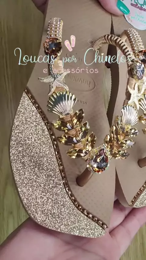 minha cliente vai viajar no carnaval e queria um chinelo todo dourado para usar. Então fiz esse modelo todo dourado de R$190