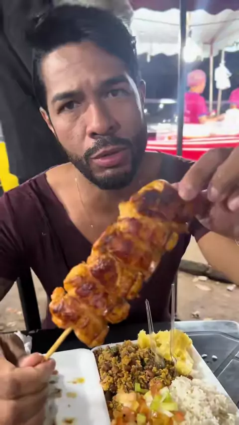 Experimentando comida de rua nas feira livre de Goiânia hoje foi na feira do jacaré na banca do espeto grill experimentando os melhores espetinho com a jantinha#goianiaindica##comida#feiras#experimentando