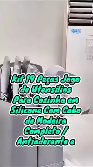 Kit 19 Peรงas Jogo de Utensรญlios Para Cozinha em Silicone Com Cabo de Madeira Completo / Antiaderente e.