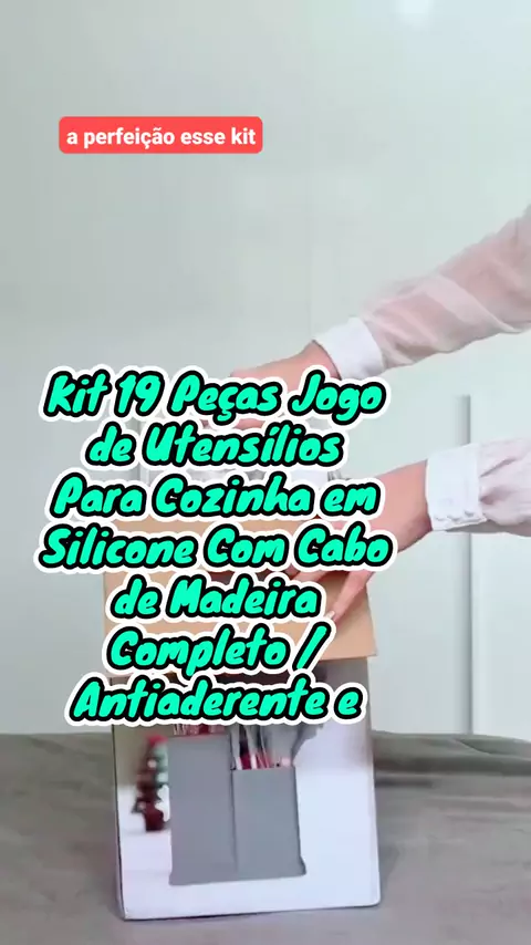 Kit 19 Peรงas Jogo de Utensรญlios Para Cozinha em Silicone Com Cabo de Madeira Completo / Antiaderente e.