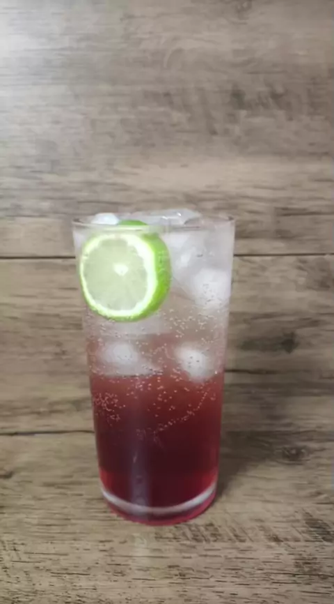 SODA ITALIANA •50ml de xarope frutas vermelhas •10 ml de suco de limão 🍋‍🟩 •gelo • água com gás #bar #coquetel #maisviews #lpbartender #drinks