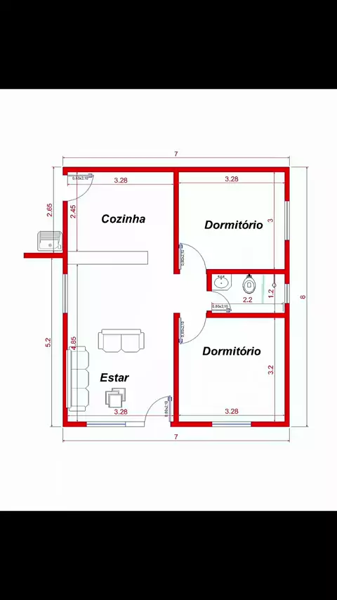 Projeto de Casa 2 Quartos #2quartos #casa #plantabaixa #projetodecasa