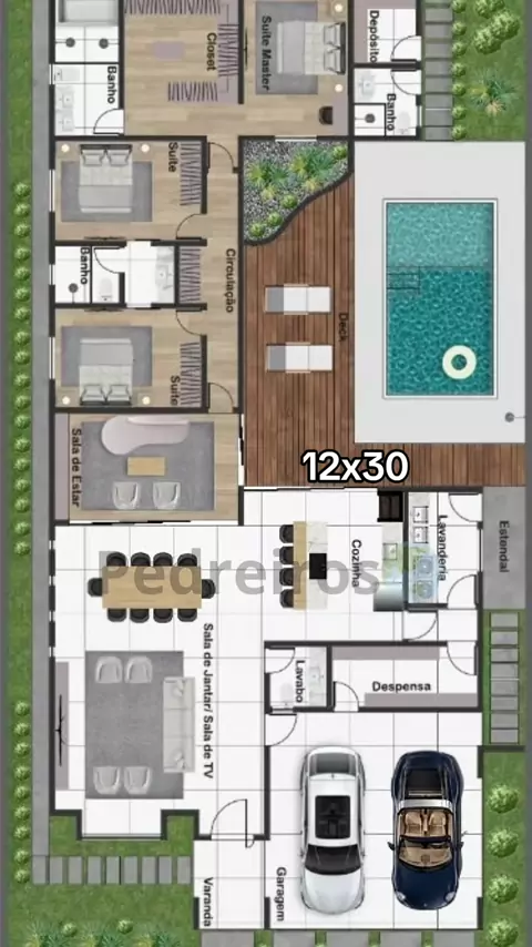 Projeto de Casa 12x30 #3quartos #plantabaixa #projetodecasa #casa