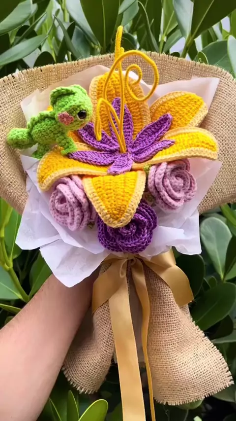 Buquê de Crochê Rapunzel ✨💛🌟💜🌟💛🌟💜🌟💛🌟💜