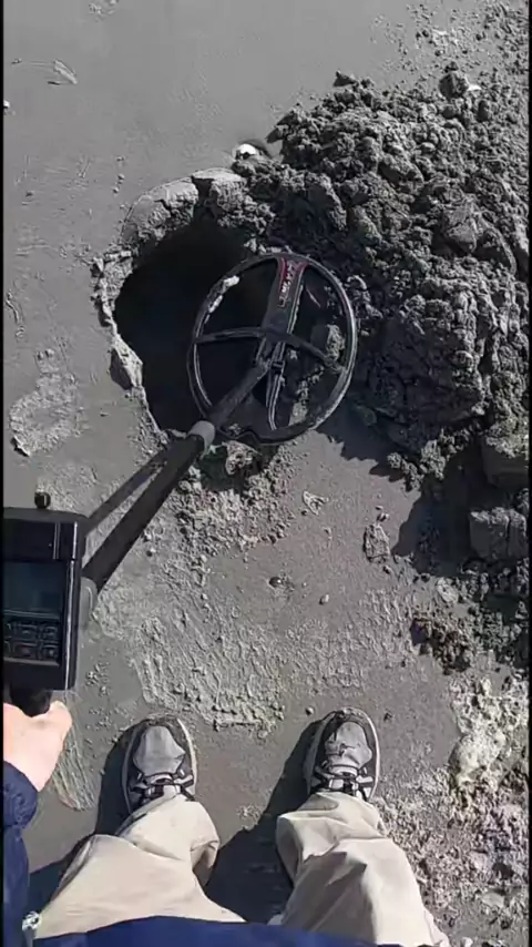 Eu estava na praia enquanto eu estava detectando metal em busca de tesouro perdido e o que é isso e que diabos!! # metaldetecting # beach # treasure