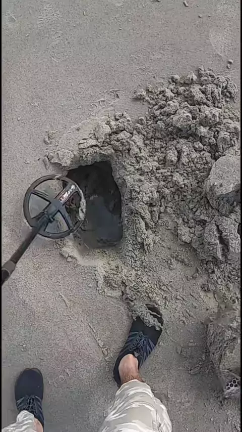 Nunca se sabe o que se pode encontrar na praia quando se detecta metal na areia molhada cavando bem fundo # metaldetecting # beach #