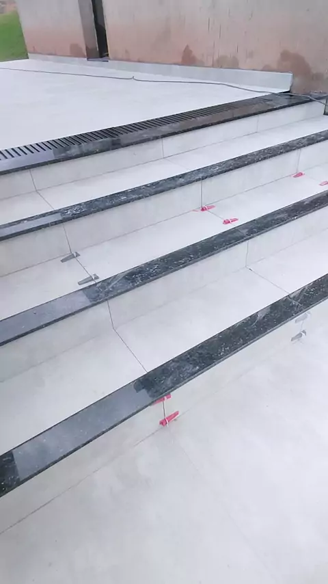 Revestindo escada com mármore e porcelanato, instalação de ralo linear