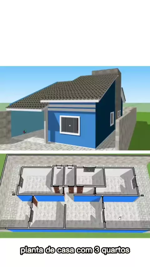 Planta de casa com 3 quartos ideal para quem busca ideias de plantas de casas pequenas. . . . #viral #Capcut #motivacional #amor #fé